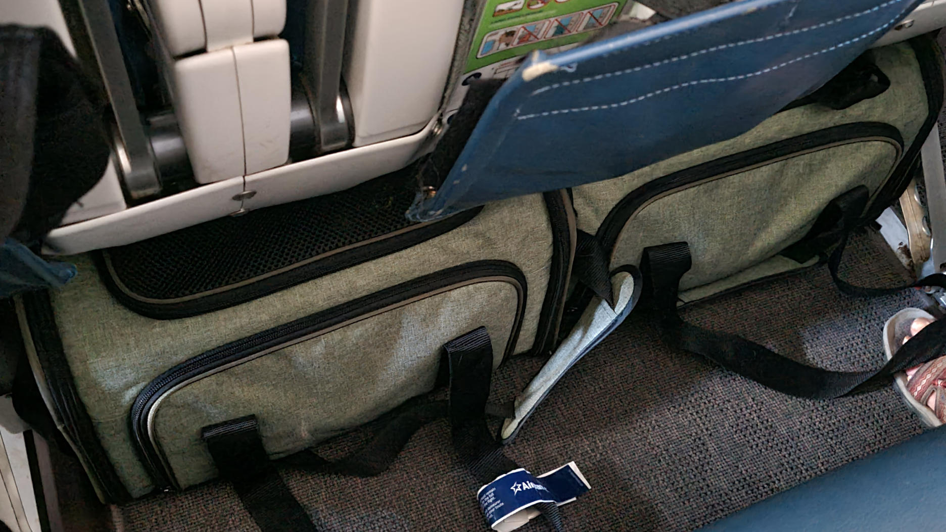 Le vol s’est super bien passé. Mes chats ne se sont pas du tout agités au moment du décollage ou de l’atterrissage. Elles ont été calmes tout le vol ! On n’a pas eu d’accident pipi non plus.