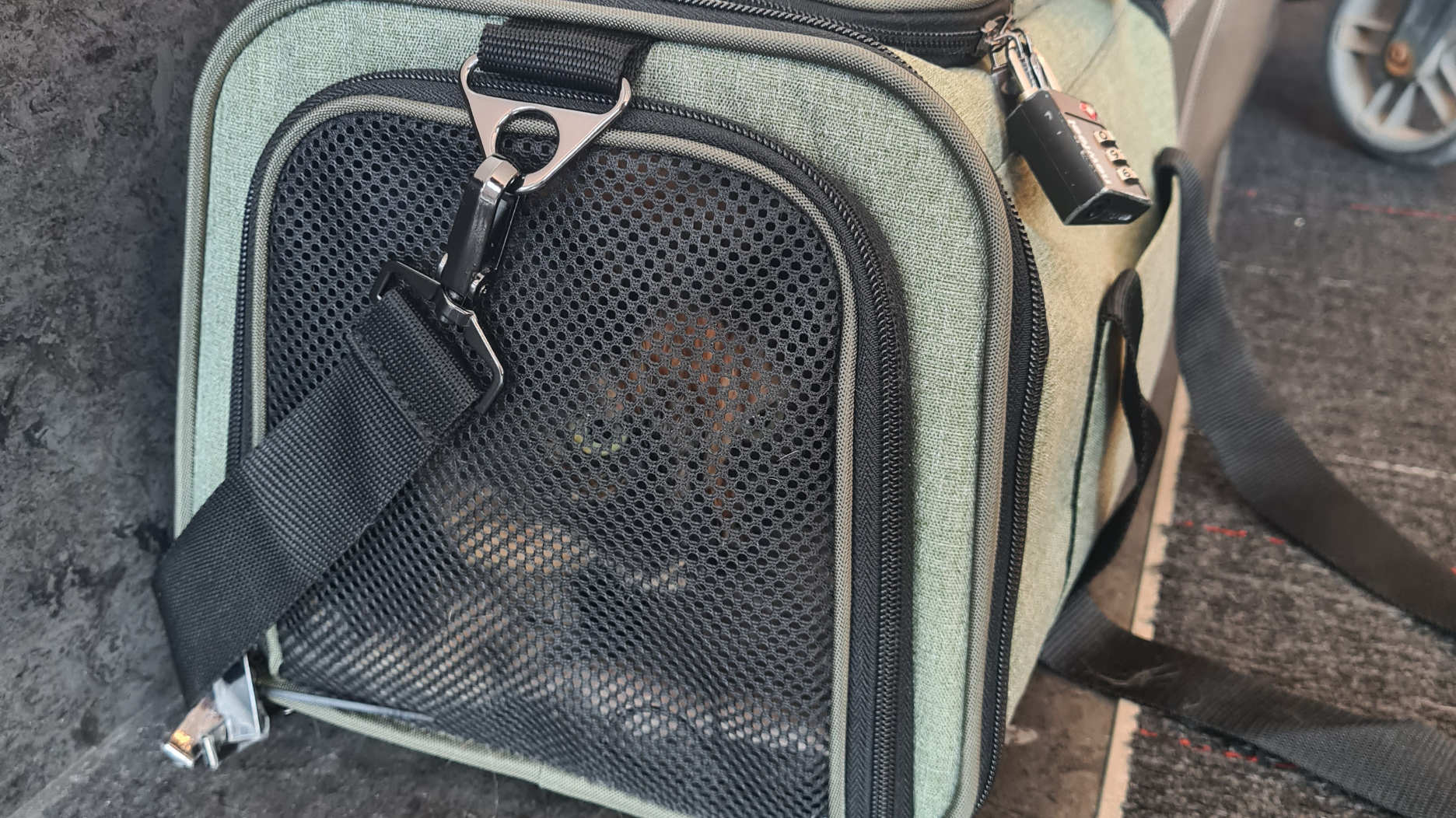 Sachez qu’on peut vous proposer de passer la caisse directement dans le tube aux rayons X avec vos bagages cabine, mais le vétérinaire m’avait recommandé de ne pas le faire car ça peut effrayer les animaux.